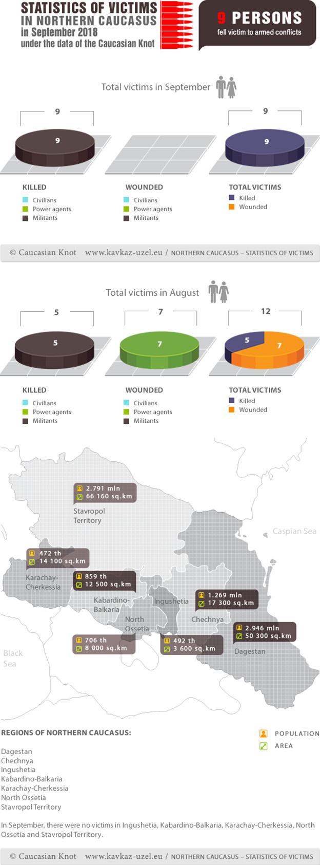 Infographics. Statistics of victims in Northern Caucasus in September 2018 under the data of the Caucasian Knot
