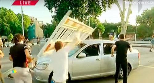 The "Caucasian Knot" has reported that on June 20, in Tbilisi, protesters demanded resignation of the heads of the Ministry of Internal Affairs (MIA) and the State Security Service (SSS). They tried to break through the police cordon and enter the yard of the parliament, after which a mass brawl broke out of protesters with policemen, who used tear gas and rubber bullets. Beslan Kmuzov, a "Caucasian Knot" correspondent, who attended the protest action, was hospitalized with a wound in his head.