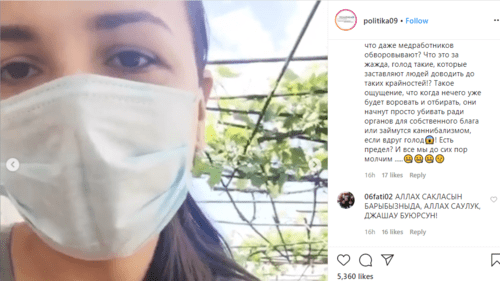 Radkha Semyonova, a paramedic of one of the teams, has recorded a video appeal, in which she stated that she got infected with COVID-19 because of the absence of protective means. According to her story, she infected her mother, aunt and brother, with whom she lives. "This could have been avoided if our work had been properly organized," she says in a video posted on May 30 in the "politika09" public on the Instagram.