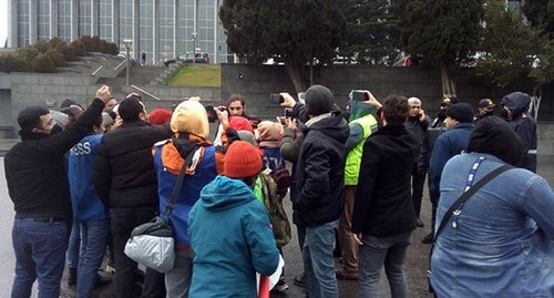 Today, about two dozen people have taken part in the protest action held in front of the parliament building in Baku. The protesters were chanting the slogans: “You cannot make free media keep silence”, “We do not want to be reporters within the borders”, and “Journalism is not a crime”, the “Caucasian Knot” correspondent, who visited the place of the protest action, reported.