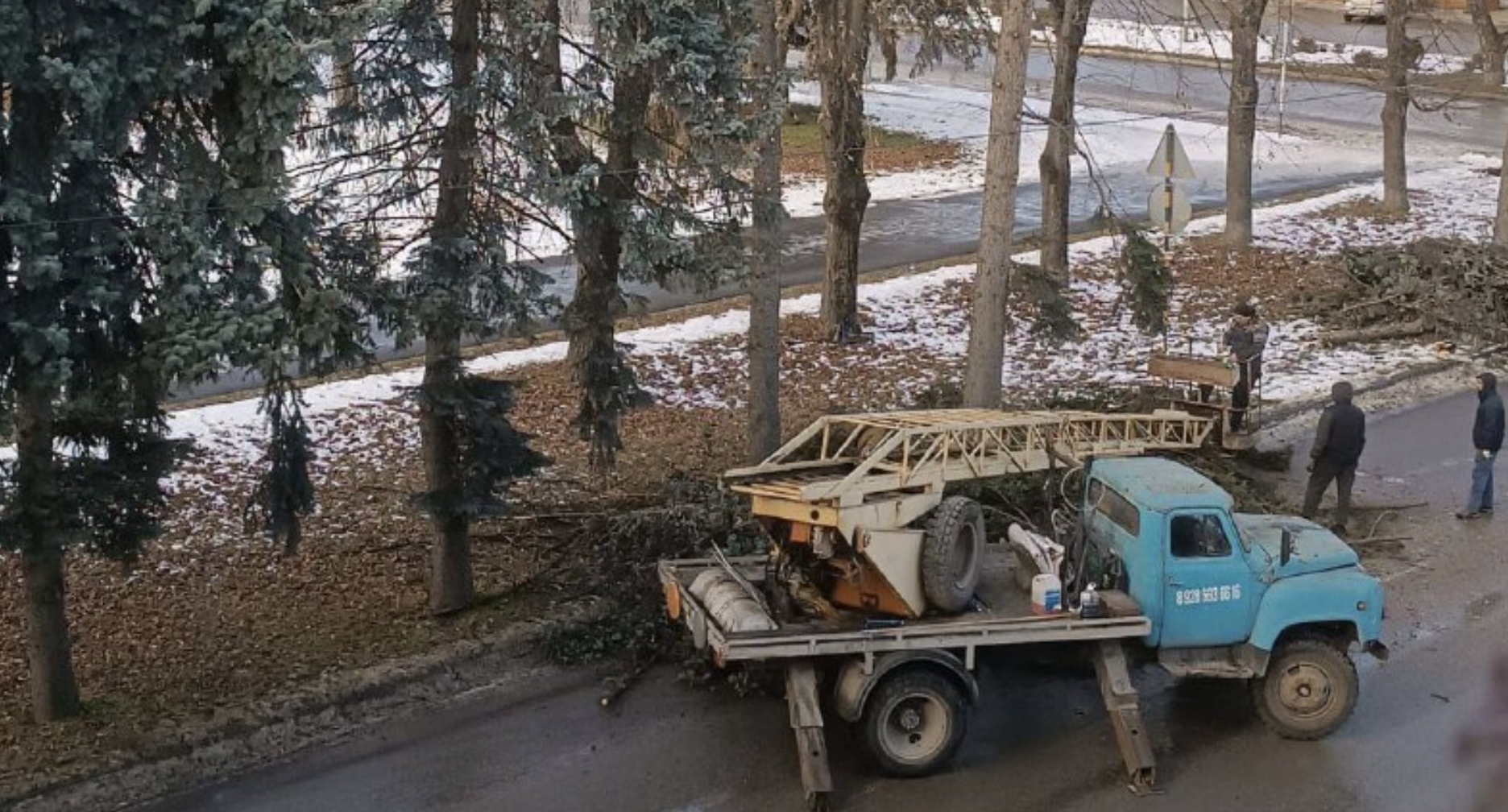 On Karashayev Street in central Nalchik, the roadway is being widened by cutting down trees. The work began on January 5th by the administration's Capital Construction Department, according to the Platforma Urban Development Institute, also under the Nalchik City Hall.