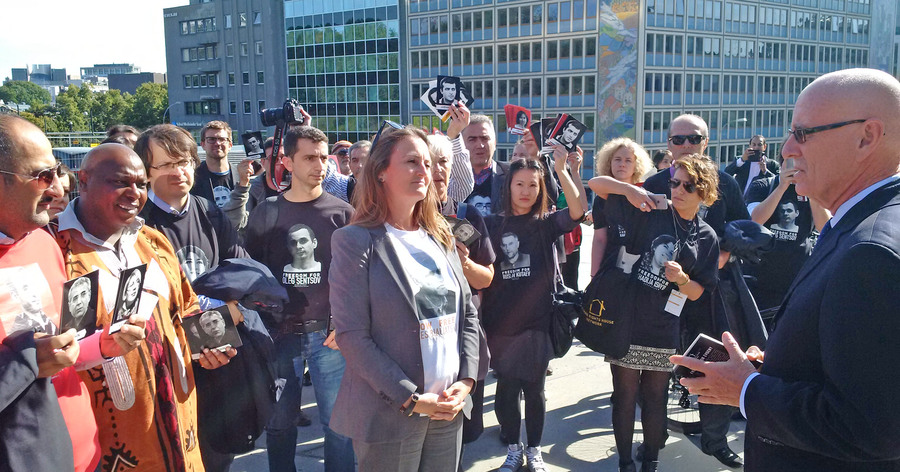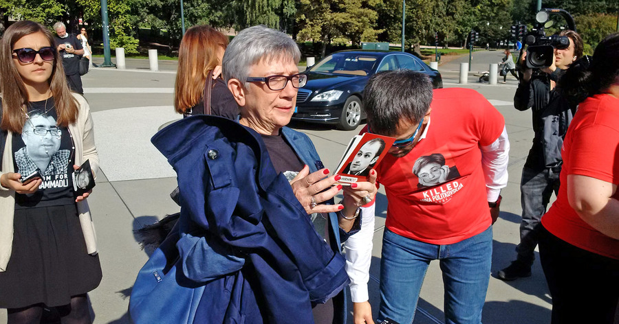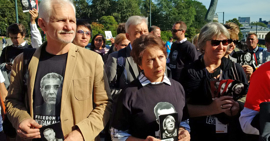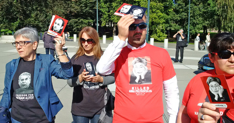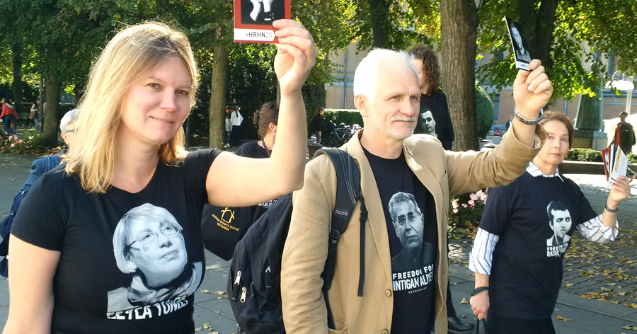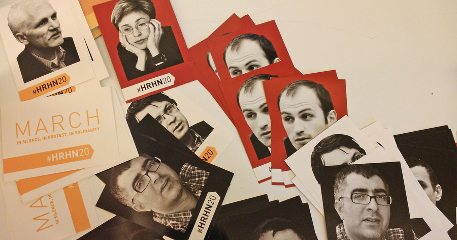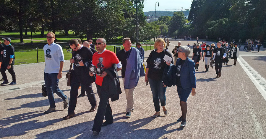 Today, in honor of its 20th anniversary, Human Rights House Network has organized a march of solidarity with human rights defenders of Azerbaijan, Russia and Belarus. About 80 activists from 20 countries marched from the Houses of Parliament to the office of the Ministry of Foreign Affairs in Oslo, where the Foreign Ministry spokesman met with them and listened to their calls to strengthen support for human rights defenders. Activists also reminded him about the political prisoners in Azerbaijan and Russia, presented him the postcards with portraits of Yevgeny Vitishko, Timur Kuashev, Intigam Aliyev, Khadija Ismayilova, Leyla and Arif Yunus. The Group continued its march to the House of Literature, where a discussion about the future of the struggle for human rights was held.