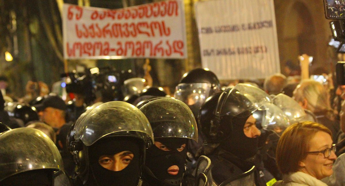 The Patriarchy and opponents of LGBT people stood against the screening of the film “And then we danced”, telling about the love of two performers of Georgian folk dances. They announced protests in order to disrupt screening of the film in four Georgian cinemas on November 8,9 and 10. Units of police and special fighters were mobilized. See photo report by the Caucasian Knot correspondent Inna Kukudzhanova.